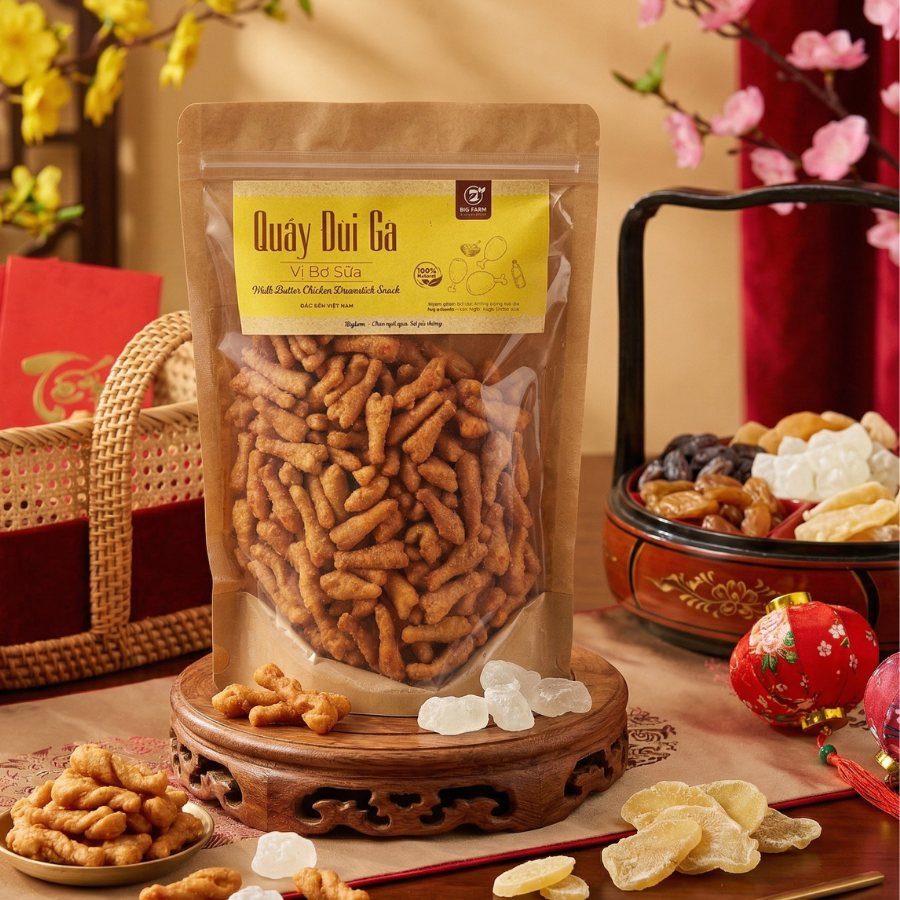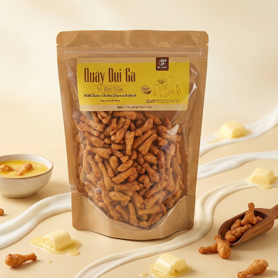 Quẩy Đùi Gà Bơ Sữa là dòng sản phẩm mang hương vị cổ điển gắn liền với tuổi thơ, được Bigfarm tinh chế lại với công thức chuẩn mực. Sự kết hợp giữa độ giòn tan đặc trưng và hương thơm nồng nàn từ sữa tươi, bơ nguyên chất tạo nên một món ăn vặt vừa lạ vừa quen, gây thương nhớ ngay từ lần chạm lưỡi đầu tiên.